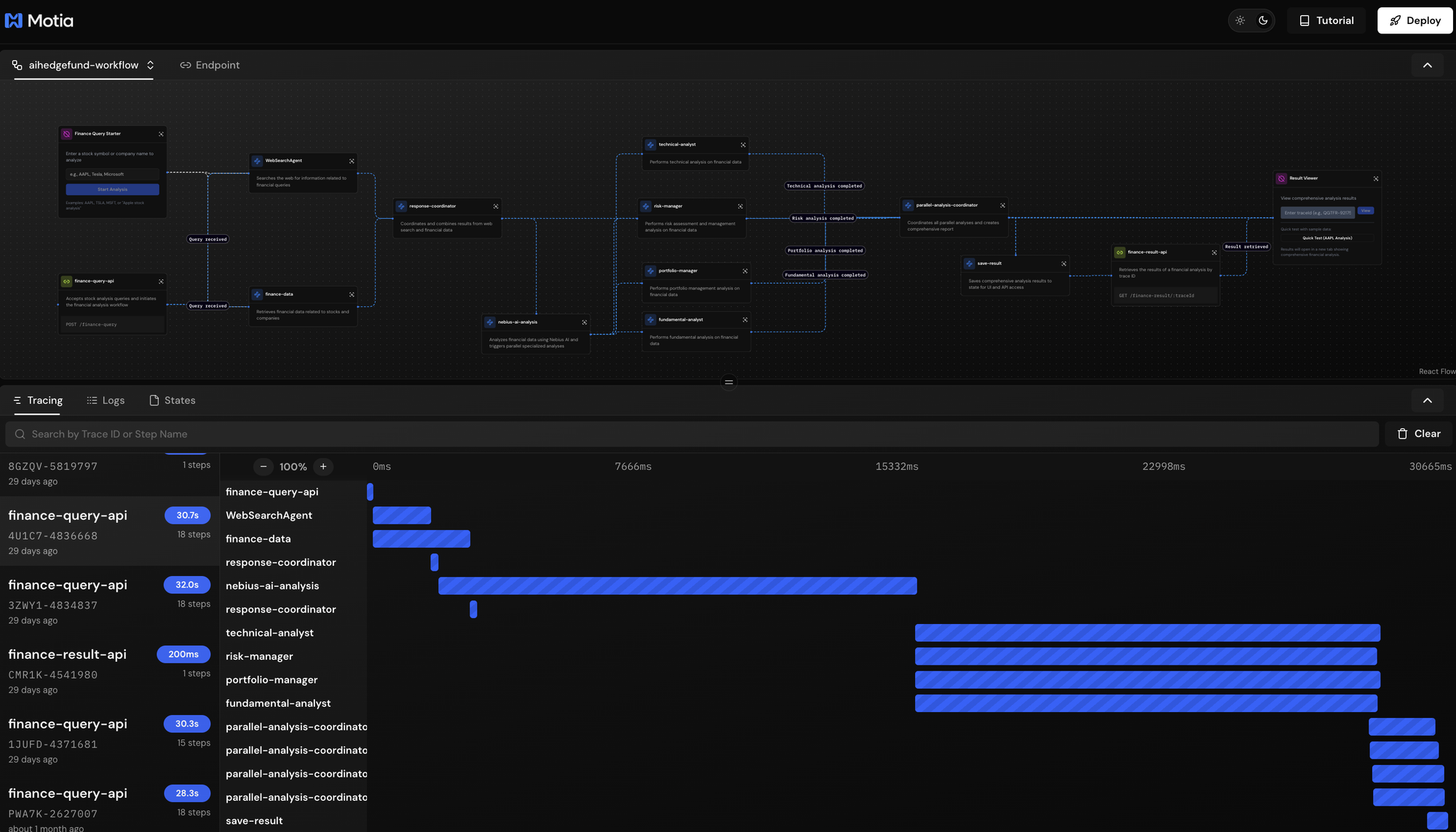 This project showcases Motia's ability to orchestrate complex workflows with parallel execution. Multiple AI analysts run simultaneously, each receiving the same data but providing specialized perspectives—mimicking how real hedge funds operate with teams of specialized analysts.